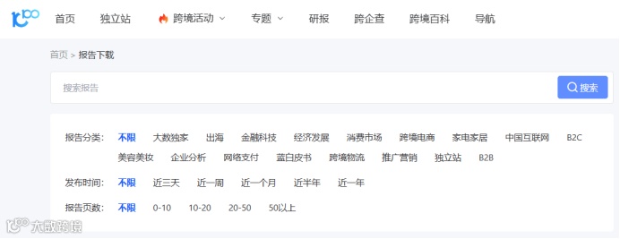 点击大数跨境研报板块:跨境报告_跨境贸易研究,跨境人的智库平台_大数跨境|跨境从业者专属的媒体平台 (10100.com)