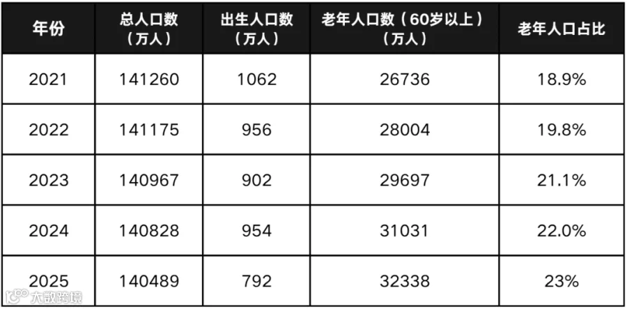 综合数据可以看出,过去五年(2021-2025)间,60岁及以上老年人口的规模与占比在加速攀升。