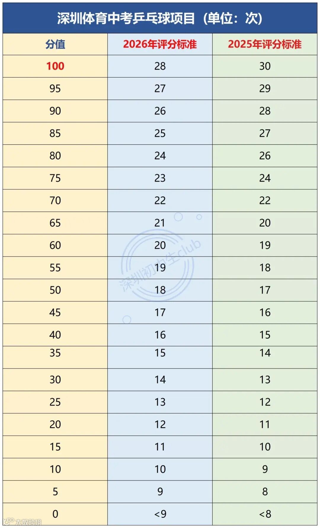 2026年满分(100分)标准:28(次)