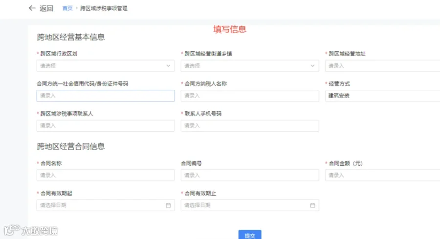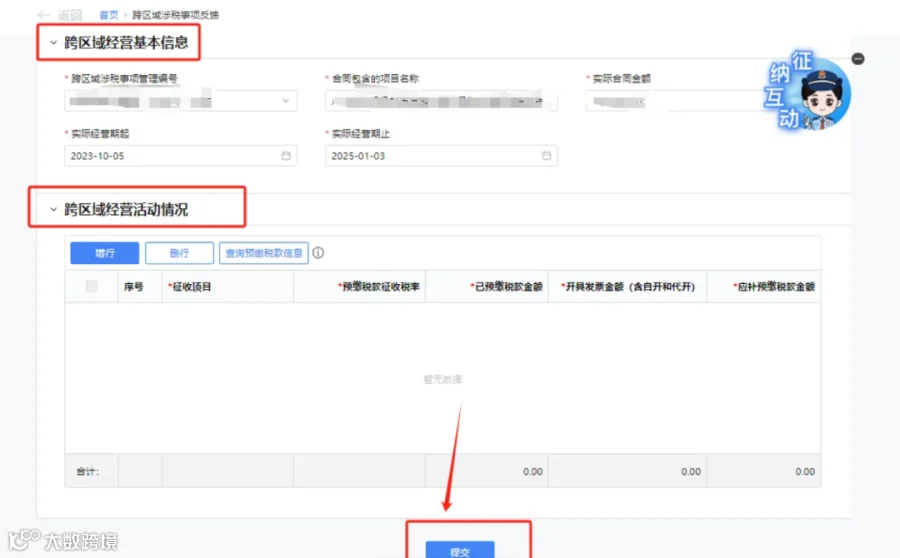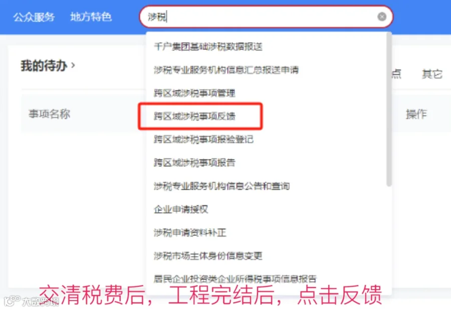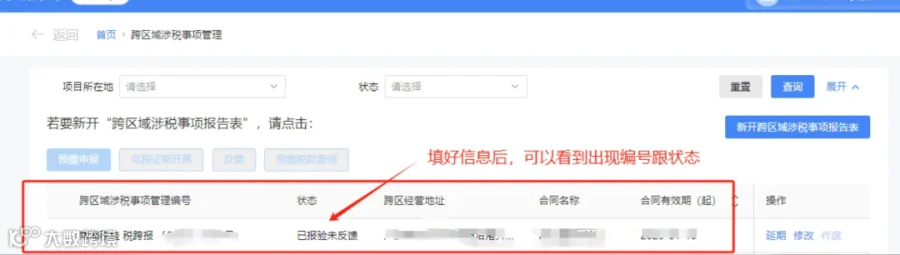 项目结束后,在系统中提交跨区域涉税事项反馈,并填写完整项目信息。