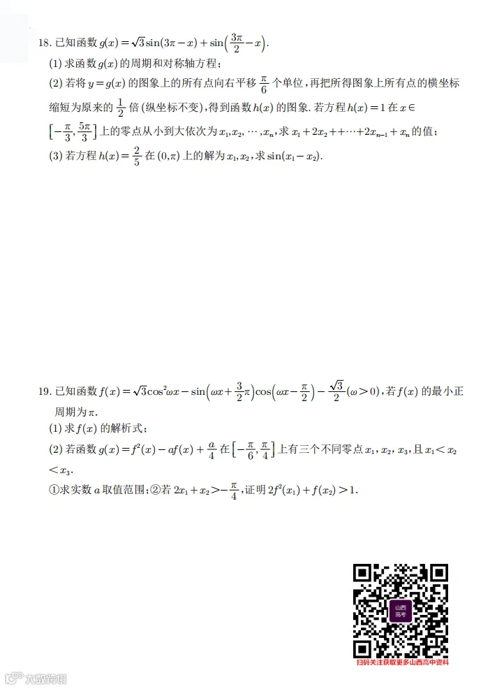 回复“高考一模、高考二模、高考三模、省适应考”,获取对应试题资料