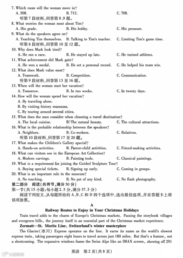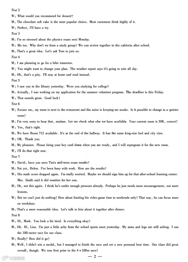 2、发消息“高二期末”即可获取下载电子版