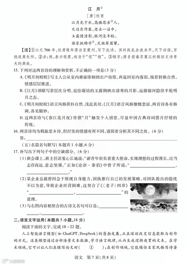 回复“高考一模、高考二模、高考三模、省适应考”,获取对应试题资料