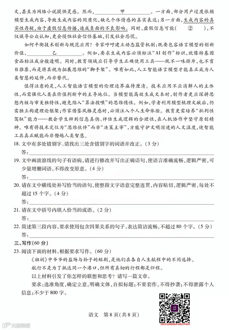如何获取打印版试卷+答案?