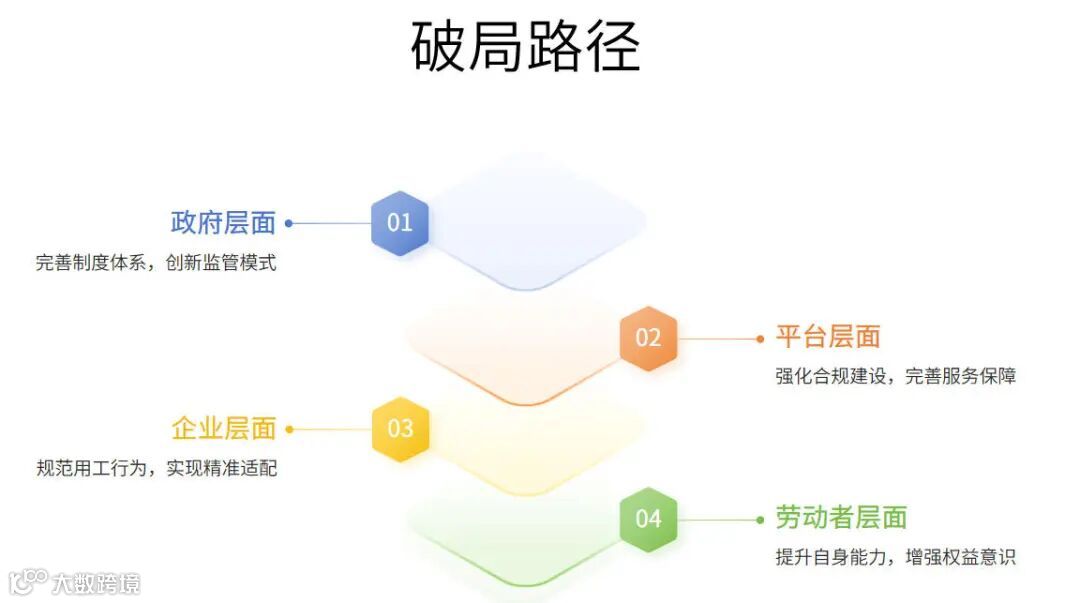 加快完善灵活用工法律法规,推动社保制度创新;加快构建“政府监管+行业自律+社会监督”的综合监管体系,利用大数据、区块链等技术实现对灵工平台的精准、动态监管,严厉打击“假合作、真劳动”等违法违规行为;同时,加强政策引导,鼓励灵工平台规范化发展,推动平台用工与实体经济深度融合。