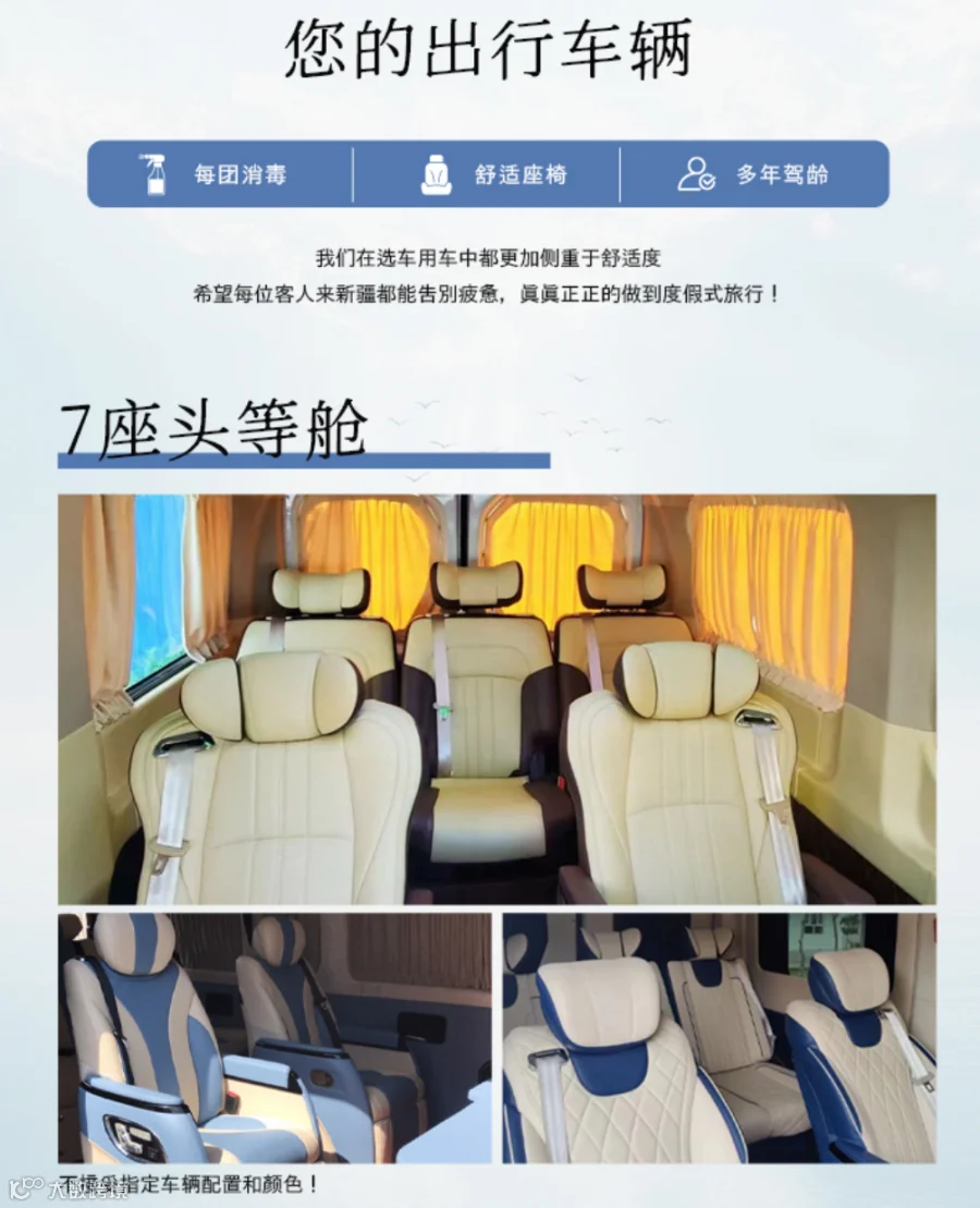 交通:2-6小团,7座营运资头等舱(不保证用车车型)保证一人一座;