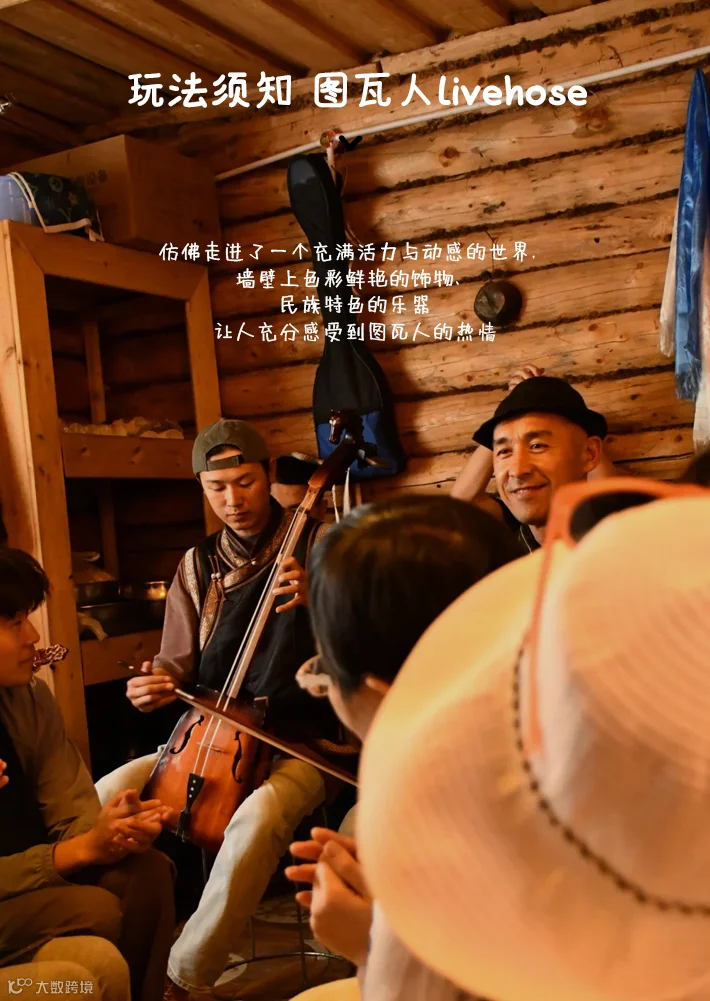推荐三:可以选择参加一场图瓦人的livehose。在悠扬的马头琴声中,聆听图瓦人古老的歌谣,感受