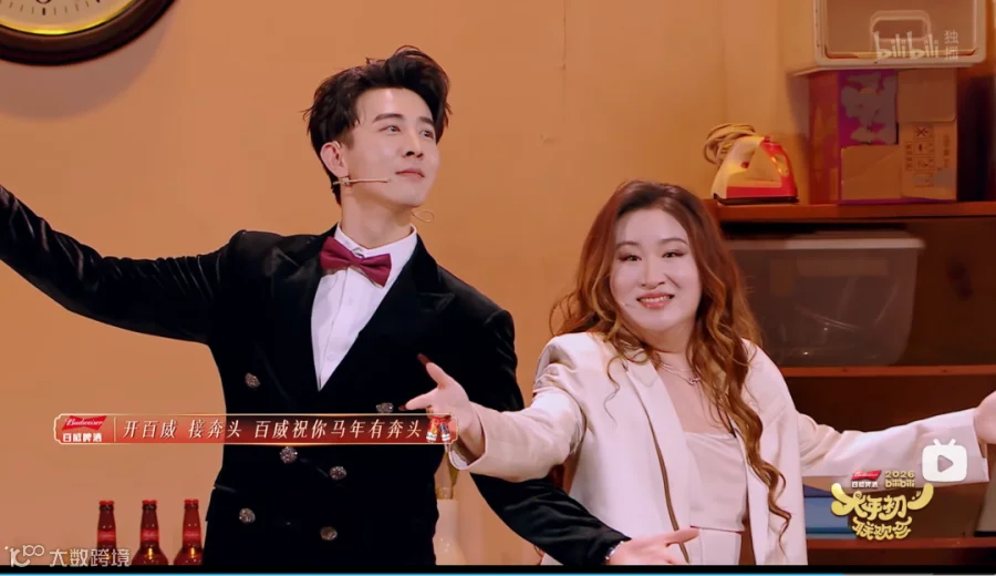 在这样的场域里出现,品牌变成了“氛围组”的一员。比如,百威连续合作了今年B站的跨年晚会、大年初一联欢会,没有空喊口号,而是深度嵌入了狂欢的氛围里。