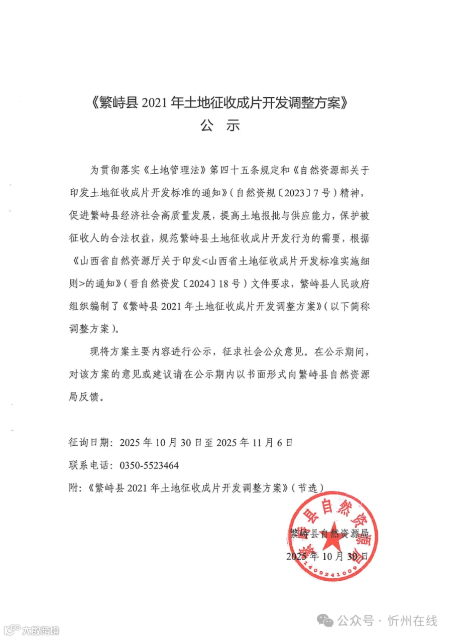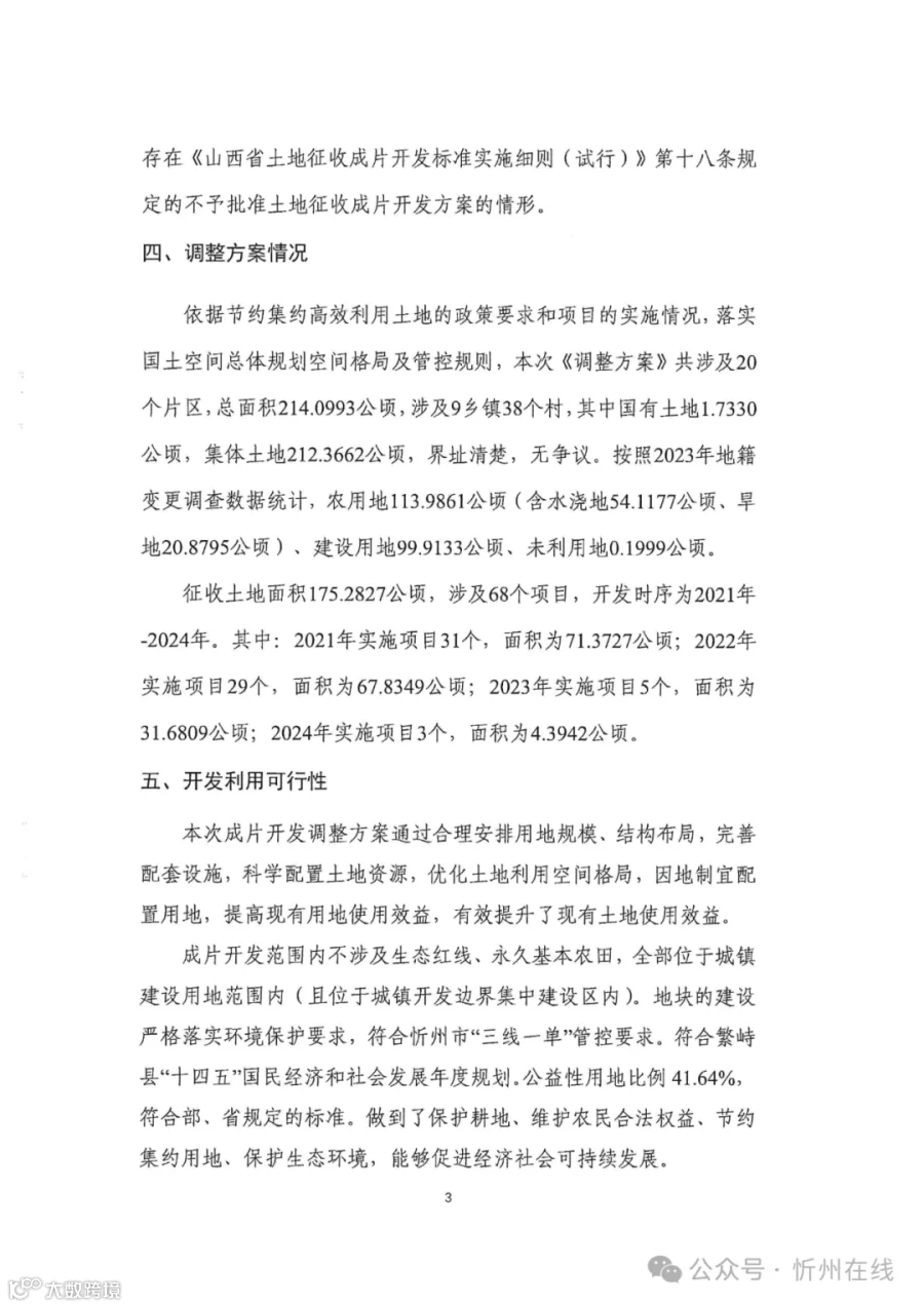 公示!忻州一县土地征收成片开发方案调整