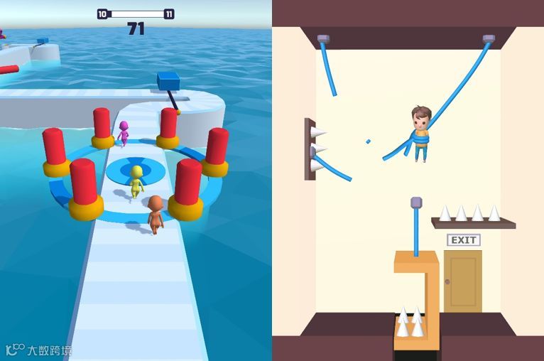 - 滑动机制:如《aquapark.io》,考验移动精度,适合添加排行榜增强竞争性。