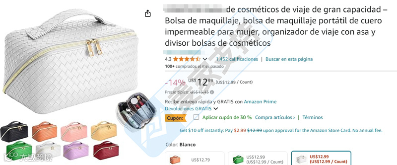 Shenzhen HongHongJing Trading Co. Ltd. 是中国深圳的一家贸易公司,本次维权的是该公司在亚马逊销售的一款大容量化妆包。这款化妆包以其实用的设计理念,重新定义了美妆收纳的新标准,专为追求便捷与效率的用户打造,其超大容量配合宽敞的开口设计,无论是日常通勤、繁忙工作还是长途旅行,都能轻松应对,让美丽随行无负担。多功能分区与分隔设计,巧妙分类各种化妆品及美容工具,180度全开式布局,让每一件化妆品都变得一目了然,省时又省心。化妆包为PU皮革材质,优雅质感的同时,实现了出色的防水性能,无论是意外溅水还是潮湿环境,都能有效保护美妆产品免受损害。无论是自用还是作为礼物赠予亲朋好友,这款集时尚与实用于一身的化妆包,都是理想之选。