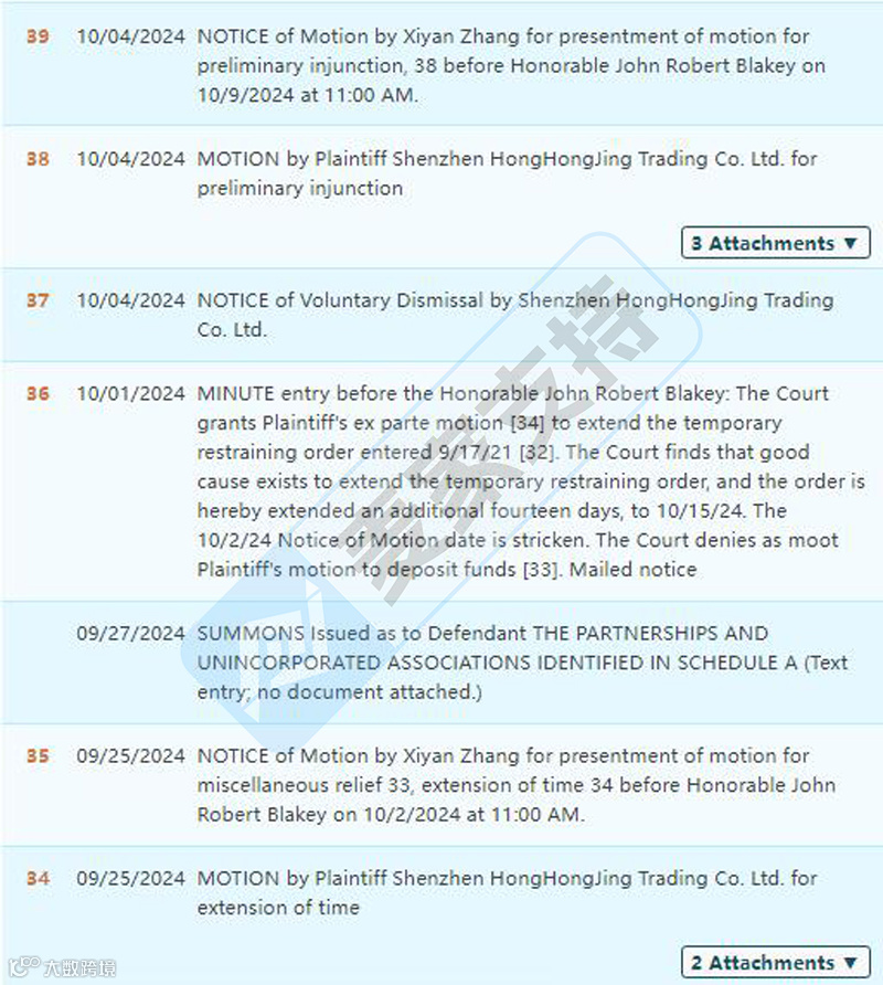 本案是5月中旬的一起匿名专利,9月17日签署TRO临时禁令,涉案的36个跨境店铺被冻结!目前该案件于10月4日申请了初步禁令,涉案卖家需尽快联系律师分析案件情况,针对性提出有效的处理方案,以降低损失。有销售本产品,且本次未冻结的卖家,也切勿抱着侥幸心理继续售卖,需尽快下架。