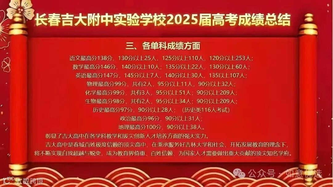 高分段比例居长春市各高中榜首,同时进出成绩比较遥遥先于长春市各高中。