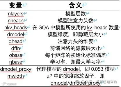 表1:不同模型的超参数设置。rffn是前馈网络隐藏层大小与模型隐藏层大小的比率。符号的定义请参见表8。