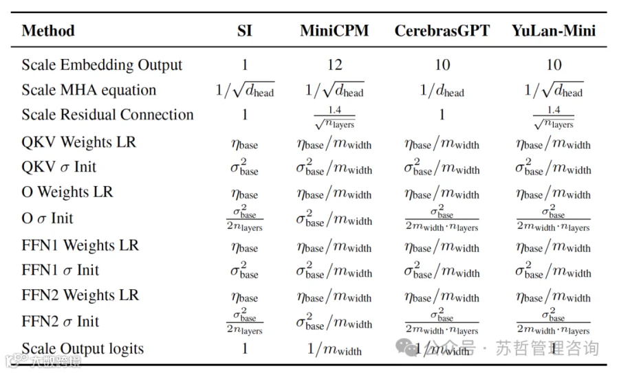 尽管文献中已经做出了重要的努力来减轻训练不稳定性[Takase等人,2023年,Yang等人,2022年,Wortsman等人,2024年],但先前的研究通常集中在个别技术或进行规模相对较小的实验。在大规模预训练实验中,缺乏对各种潜在技术影响的系统调查。在我们的预训练过程中,我们遇到严重的训练不稳定性问题,促使我们进行深入研究如何有效解决这个问题。我们的主要方法涉及将µP样式的初始化[Dey等人,2023a]与重新参数化方法[Nishida等人,2024年]相结合,以调整学习率并稳定训练。接下来,我们将介绍一个关于保持训练稳定性的详细方法。