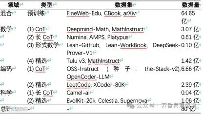 我们包括各种高质量的数据源,特别是在第4.3节讨论到的合成推理数据。