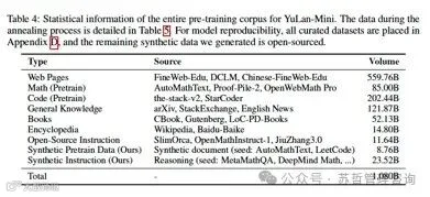 Table 10:使用的所有开源数据集的综合列表。 对于仅通过链接可用的数据集,我们还在我们的项目网站https://github.com/RUC-GSAI/YuLan-Mini上提供额外的指导。
