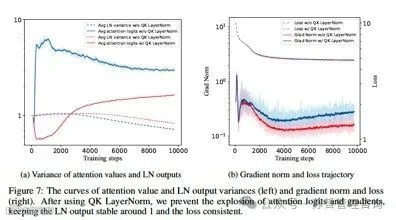 训练稳定性问题甚至存在于相对较小的语言模型的训练中。例如,正如Wortsman等人[2024]所经验观察到的那样,在相同的学习率下,模型越小,模型对数的数量级就越大,这是导致训练不稳定的典型因素。一般的方法,比如替换导致峰值的数据或降低学习率,通常只能缓解表面问题。