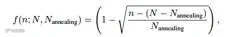 学习率退火 由于我们使用WSD调度器,在退火阶段,学习率将从稳定训练阶段的值逐渐减小。我们需要选择一个合适的学习率退火函数。我们研究了几种典型的学习率退火函数[Hägele等,2024]的性能,如线性退火、余弦退火、1-平方根退火。我们经验证明1-平方根的效果最好,因此我们选择1-平方根作为我们的学习率退火函数,其定义如下:
