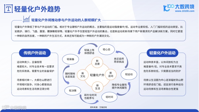 轻量化户外运动正在快速崛起,降低了参与门槛,让更多人可以在城市生活中享受户外乐趣。未来轻量化装备和新型休闲运动将成为市场的主流。
