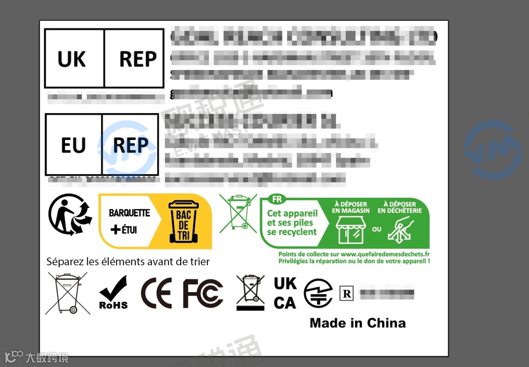 欧代/英代印刷一定要完整,即左边+右边信息要完整展现。印刷必须清晰且牢固,欧代/英代的地址、电话信息尽可能印刷在产品、使用说明、包装上(彩色产品包装,非快递包装),保证耐久性。