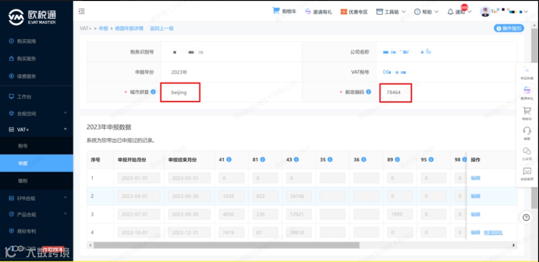 核对完成2023年申报数据汇总金额并确认无误后可以直接提交申报,欧税通对接税局API接口,会秒下回执。