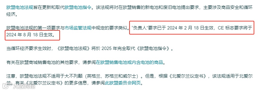 欧盟电池新规生效对卖家的要求