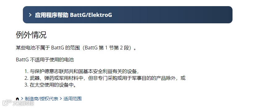 通常,带有可拆卸电池的电子电器产品,德国WEEE和电池法都要注册;对于内置不可拆卸电池的产品,除了注册德国WEEE,电池法也一样需要注册。根据ElektroG法规规定,德国电池法只有以下情况不用注册: