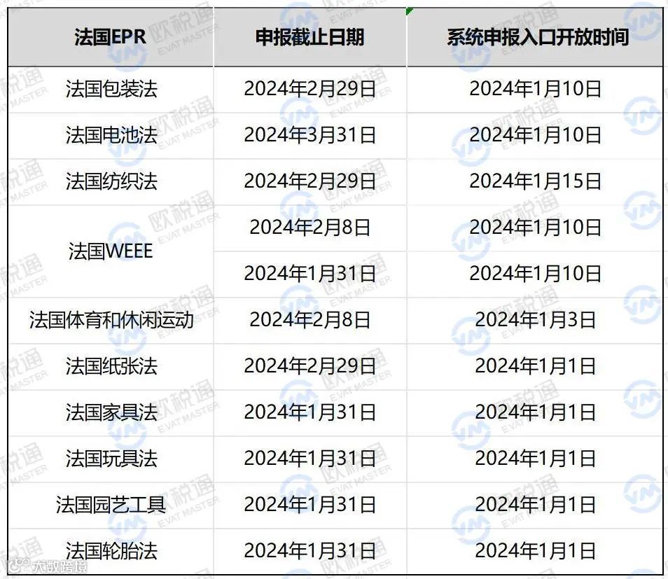 预申报目前仅针对3个类目:法国包装法、法国电池法、法国纺织法;不同类目,预申报缴费规则和时间不同。