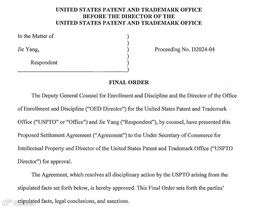 因此USPTO认为其中近 3100 份专利文件存在虚假签字情况,是非注册执业者欺诈性地使用注册执业者的签名提交的申请。