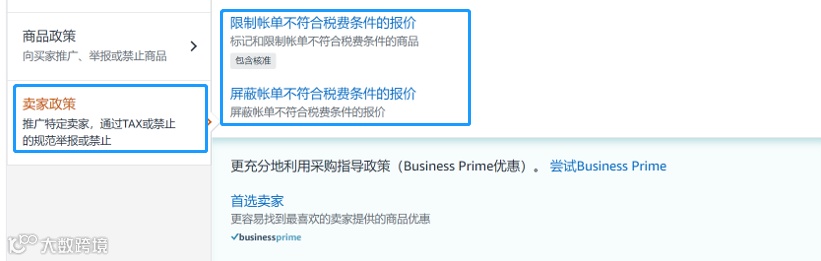 注:卖家政策是亚马逊企业购Prime的福利之一,亚马逊企业购的账户管理员可以提前设置卖家政策,鼓励公司员工等用户按照公司内部政策进行购买。