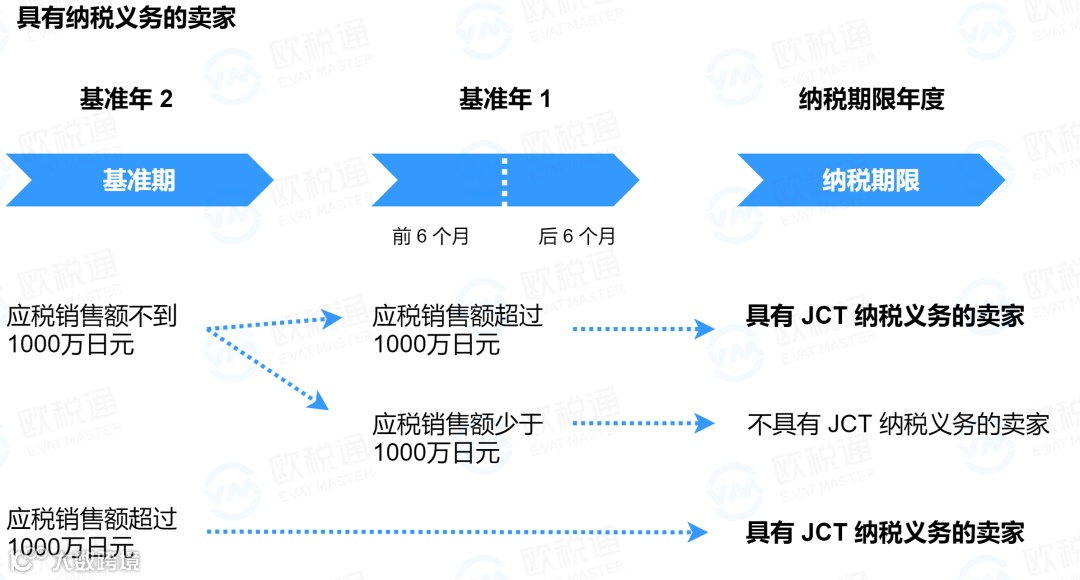 如果卖家符合以下其一条件都必须缴纳日本JCT:1. 在基准期内的应税销售额超过1,000 万日元;2. 在基准期内的应税销售额不超过 1,000万日元,但在上一个基准年上半年的应税销售额超过1,000万日元;3. 公司实缴注册资本金在1,000万日元以上。总体来看,阈值超过 1000 万日元或公司注册资本金在 1000 万日元以上都需要注册JCT税号。