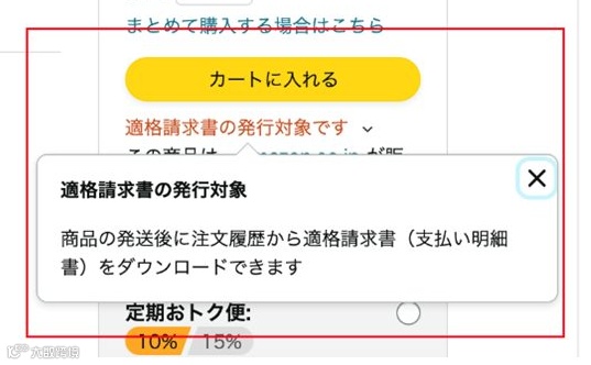 (亚马逊商户端购物车下方显示能开具JCT发票的产品)