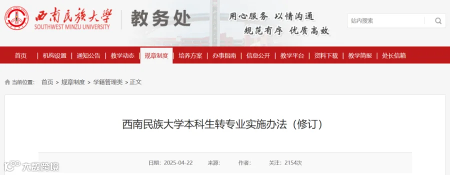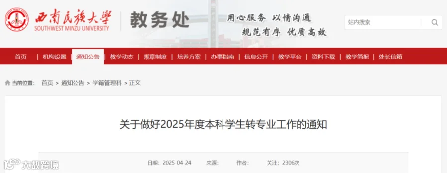 西南民族大学2025年度转专业通知