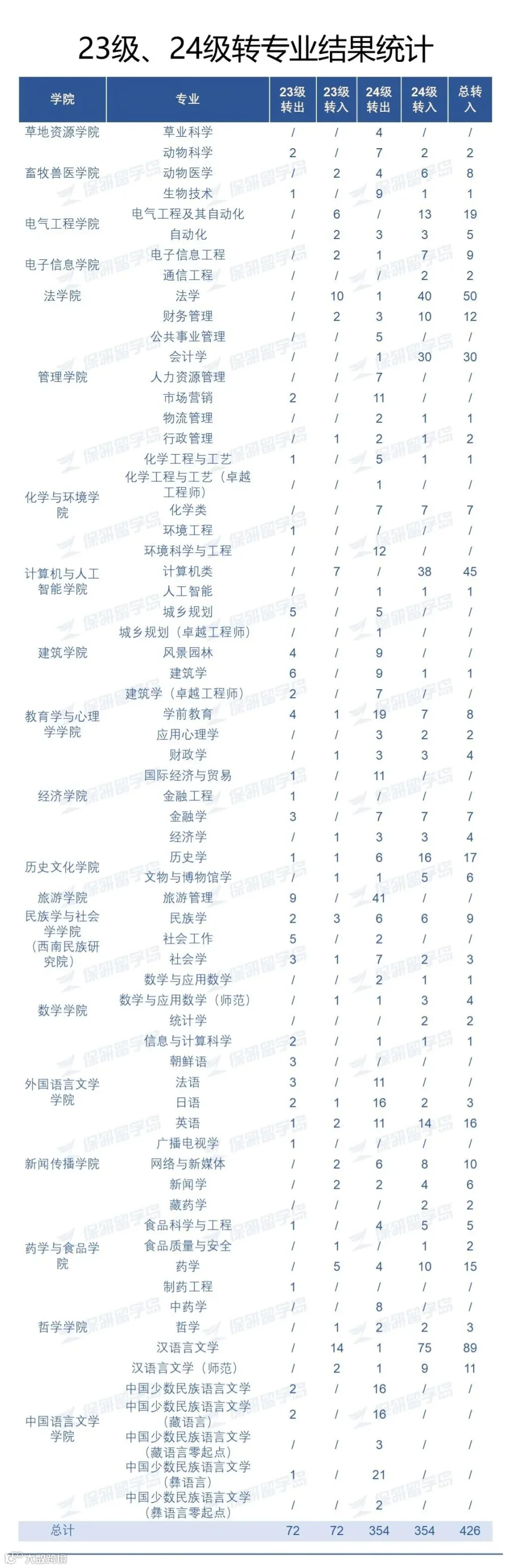 下面对24级、23级转专业结果分别进行分析。