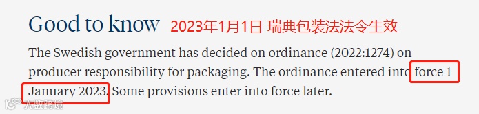 2023年1月1日瑞典包装法法令生效,Wish也将在今年第2季度左右要求卖家提供瑞典EPR注册号和注册证明,否则将被禁售相关产品。瑞典包装法涉及包装产品多样,卖家提早自查,提早合规!