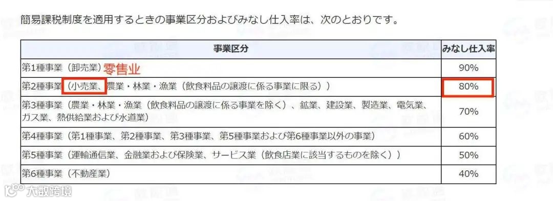 简易申报是允许企业按照一个既定的采购系数进行申报。日本国税厅根据不同经营类型制定了不同采购系数,电商行业属于【零售类】,采购系数为 80% 。