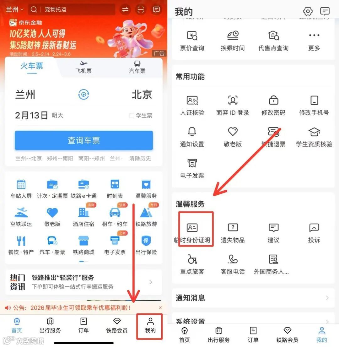 ✅坐火车高铁没有身份证,可以通过铁路12306办理临时身份证明进站乘车。