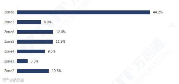 美西仓发货所有订单中的Zone区占比情况