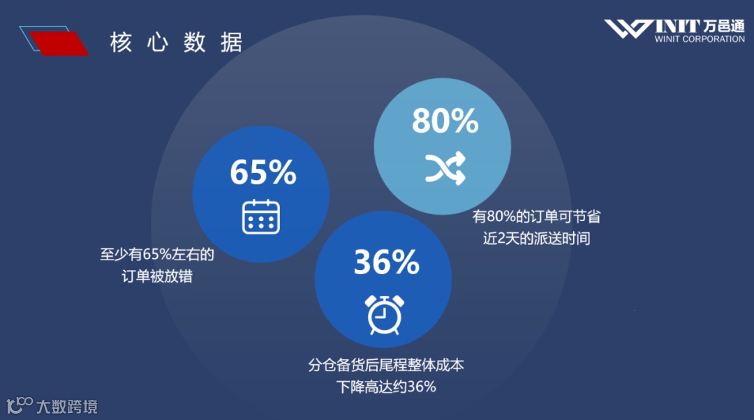 我们依据整体数据分析,惊奇的发现:在现有美西仓订单中,有65%左右的订单被错放区域(可以被优化到美东或者美南发货),这部分订单优化后,将有80%的订单可节省近2天的派送时间,尾程整体成本下降高达约36%。