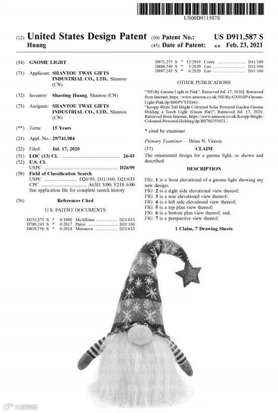 前年很火的圣诞侏儒形象,关键词“GNOME(侏儒)”搜索也有周边售卖,卖家如果不是自己或供应商设计,属于非正规授权的,建议不要随意销售同款产品。因为有不少设计已经申请专利: