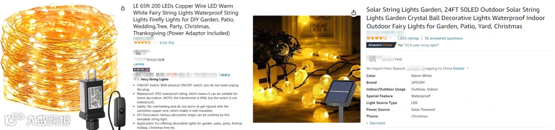 除此之外,还有亚马逊销量不差的装点必需品——圣诞树灯。常见外观:爆款星灯串、环绕树枝的灯泡状,雪花状及丝带状等。不少设计款式也已申请美国外观专利,卖家除了规避外观专利侵权,还要及时做好认证。如在美国都必须进行UL认证、FCC认证、DOE认证。