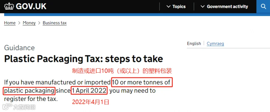 2022年4月1日起,您符合条件后的30天内要注册塑料包装税。从注册之日起,您必须为所有应缴税的部分缴纳税款。