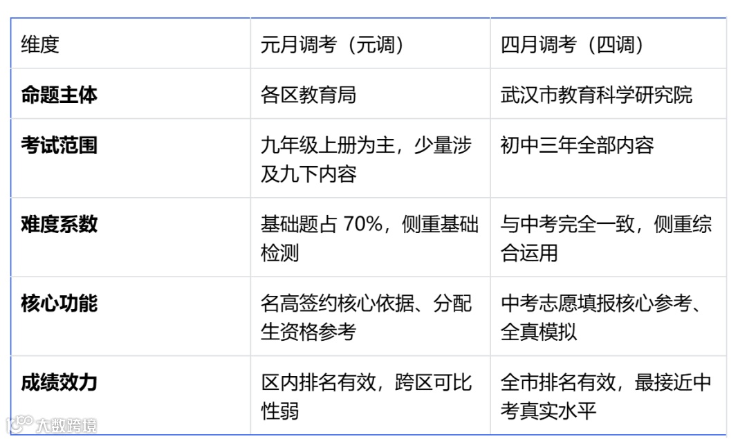 初中阶段的调考主要针对九年级学生,是中考备考的核心组成部分,传统上被称为 “元调” 和 “四调”,民间有 “元调是金,四调是银” 的说法,足见其在升学中的重要性。