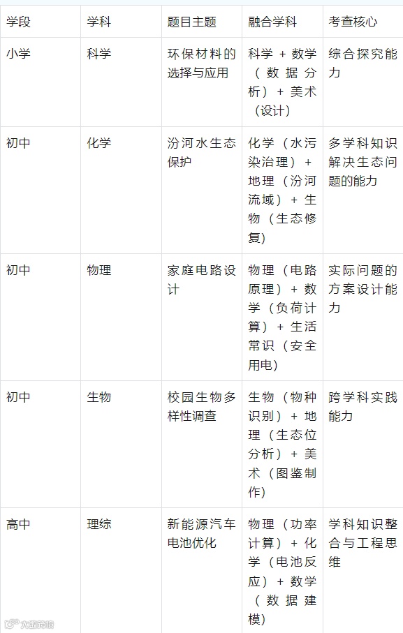 本次考试的跨学科融合题,并非简单的知识叠加,而是围绕真实主题的 “有机整合”—— 占比约 25%-30%,核心是培养学生的系统思维。以下为不同学段的典型案例: