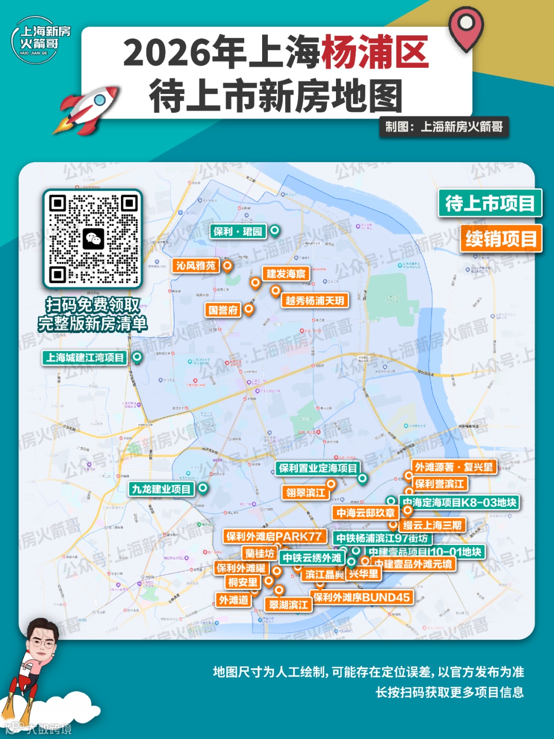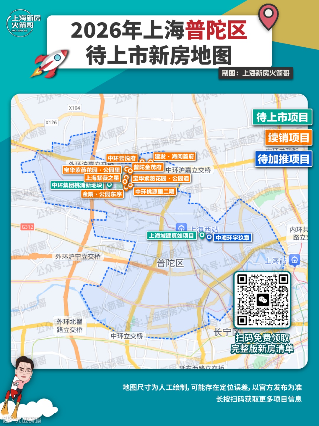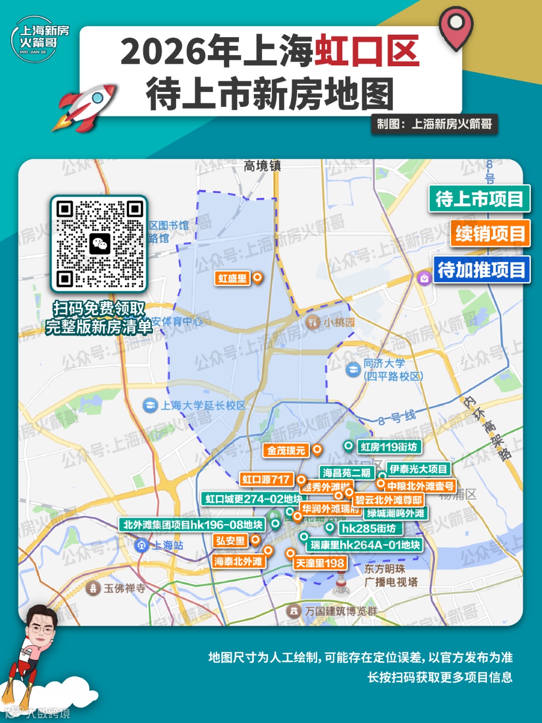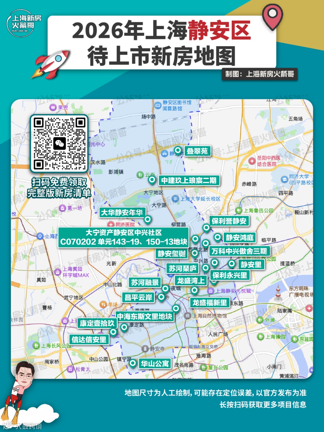 本篇聚焦黄浦、静安、徐汇、长宁、虹口、杨浦、普陀七大中心区,扫描预计入市的新房格局。火箭哥制作地图如下,需要新盘待上市清单,欢迎扫码领取。