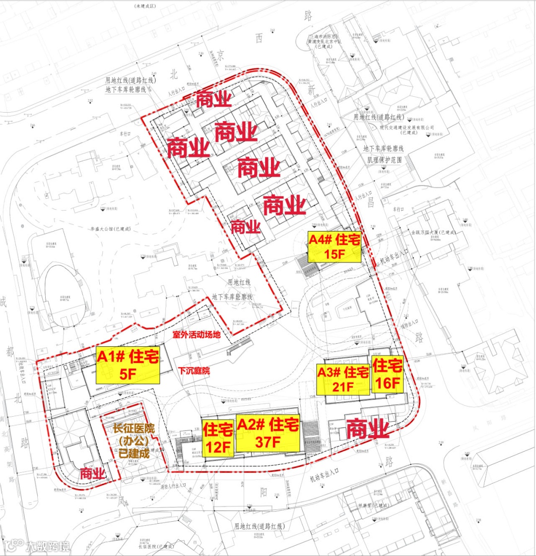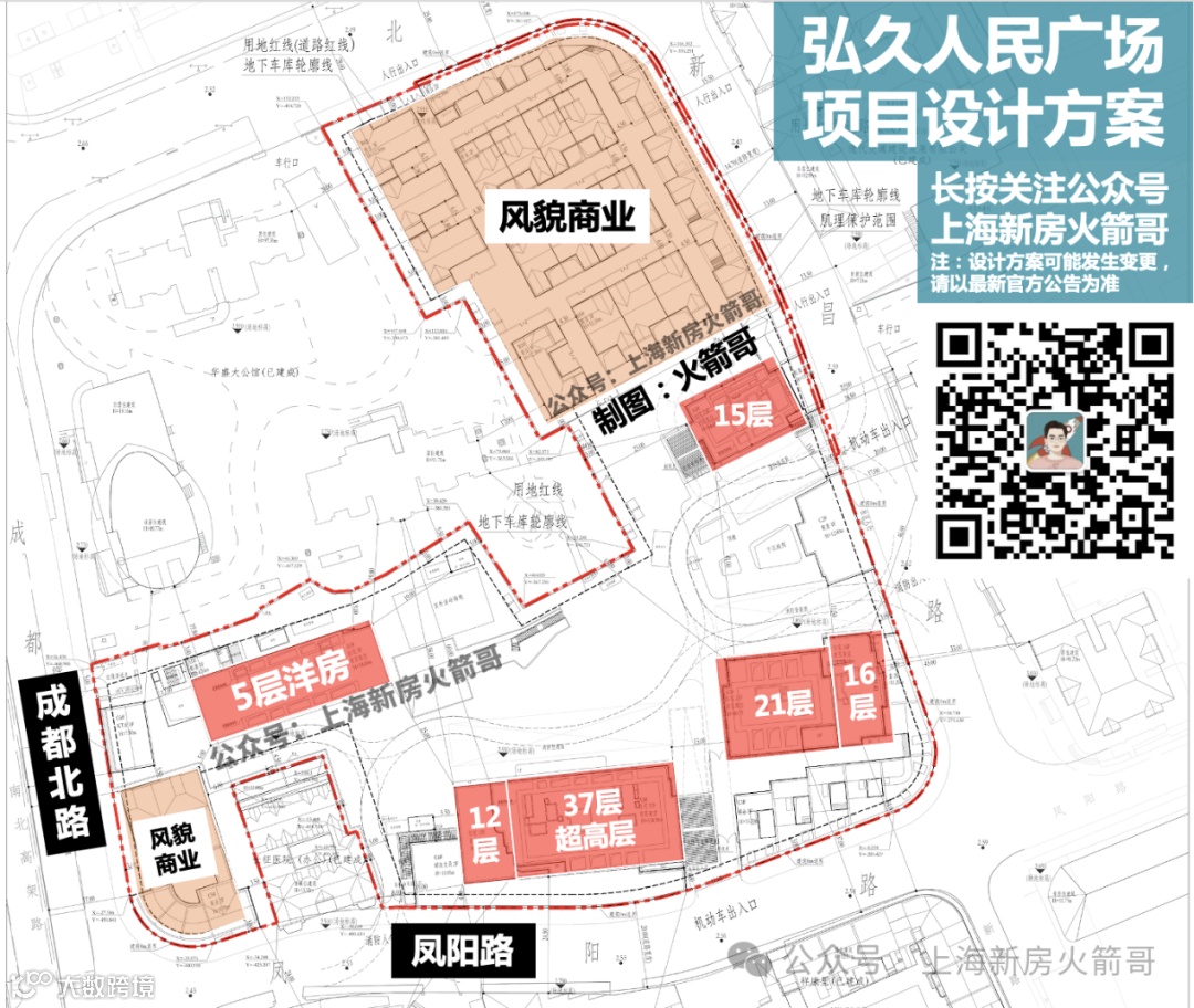 规划包含4栋住宅,含一栋约134米超高层,全部首层架空,并配备下沉庭院及里弄式商业,属城市中心顶级豪宅。