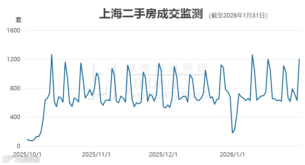 根据网上房地产公开数据(截至2026年1月31日),1月份上海二手房成交套数为22834套。依据过往经验,其中存量住宅成交约2万套,同比增长超过26%。
