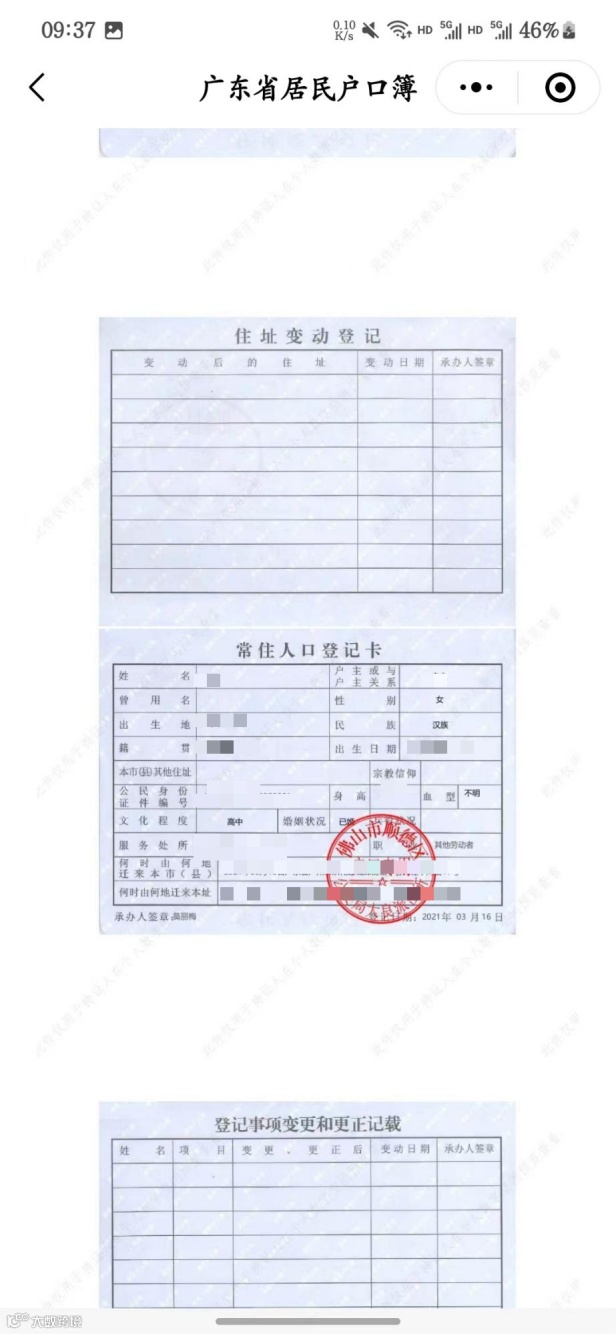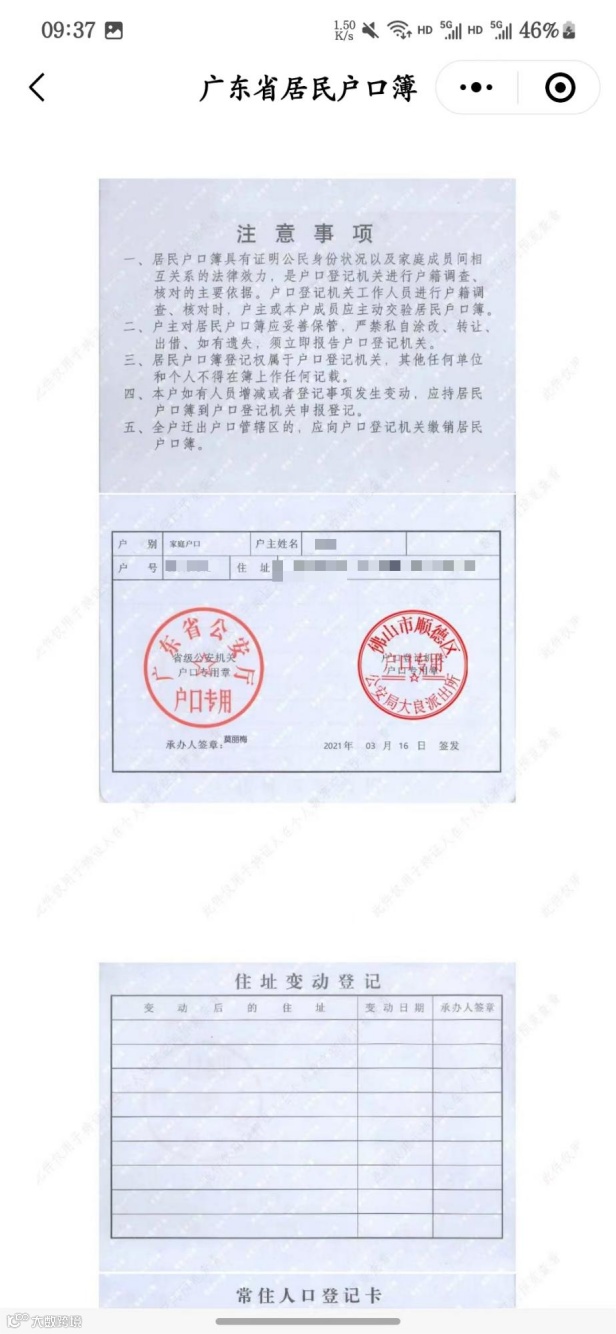 (三)点击后均能查看家长户口簿资料(户主页+本人页)。