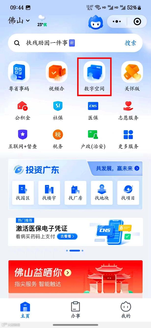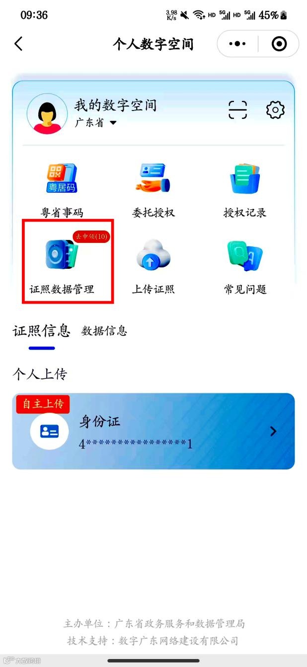 (一)打开粤省事,登录数字空间,进入证照数据管理。